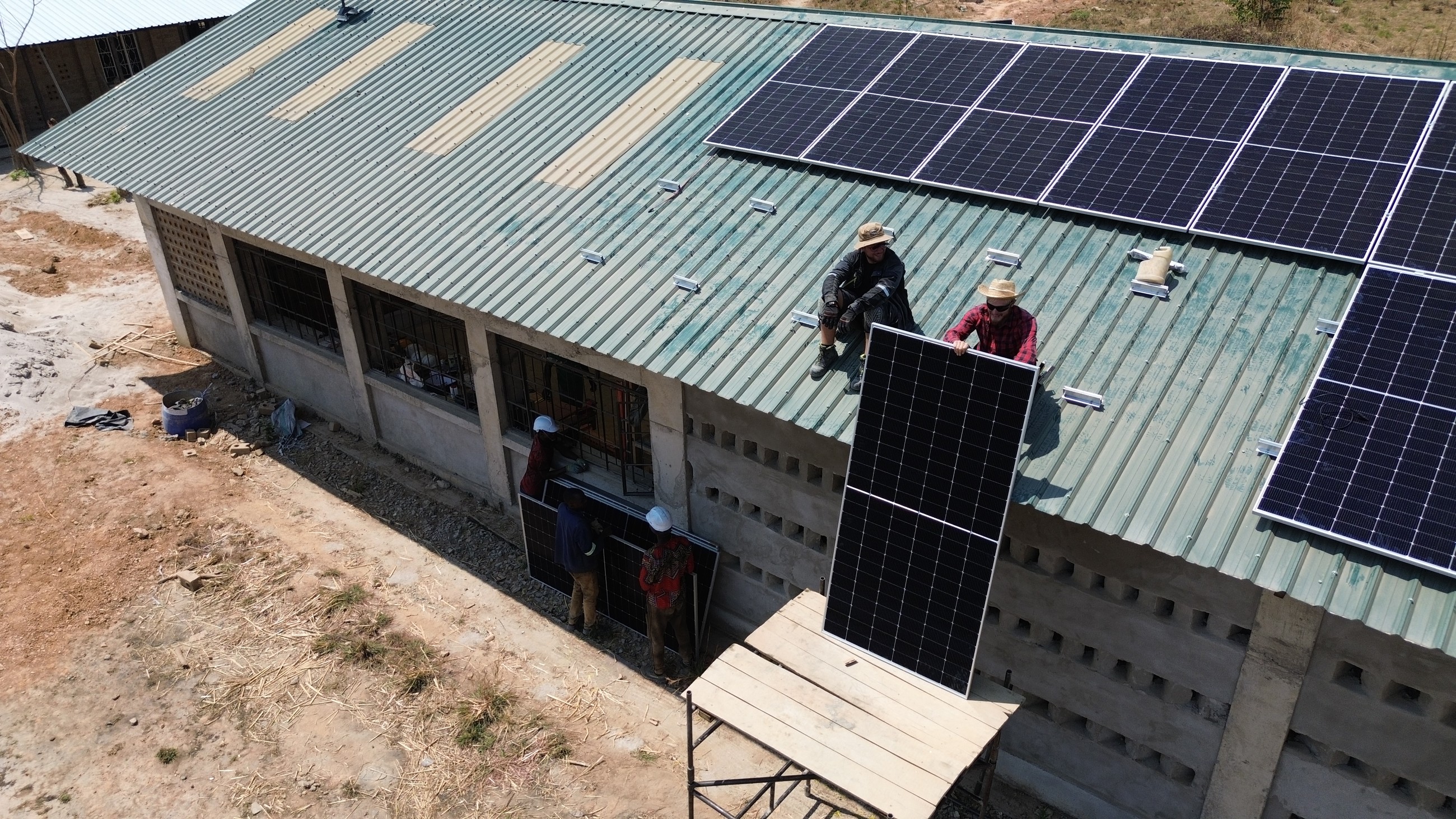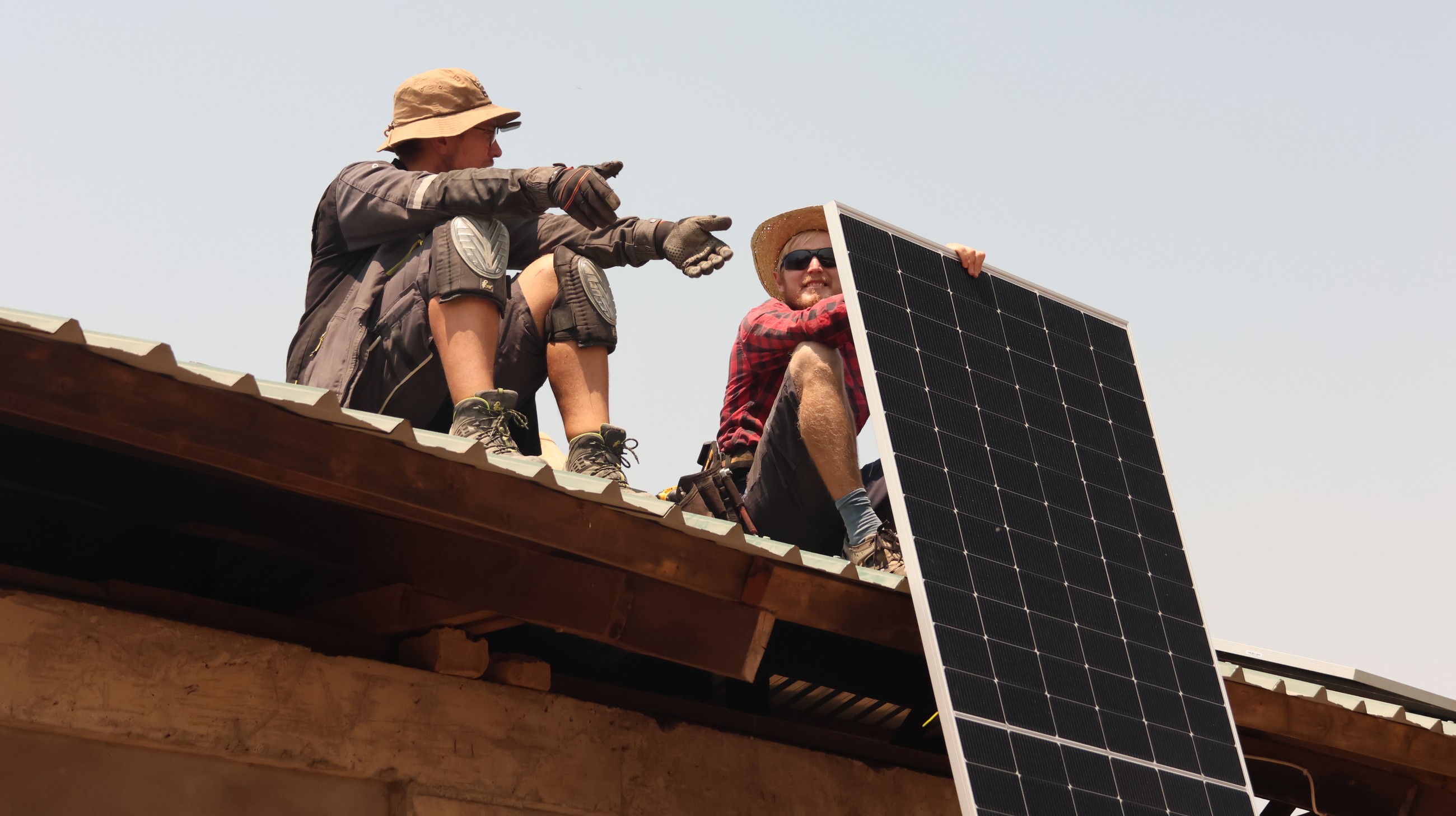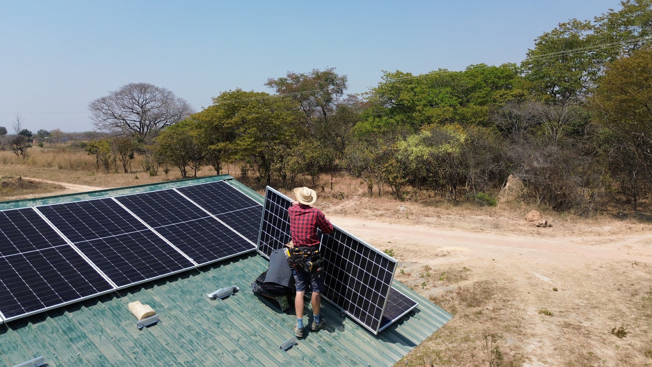 Jakmile byly dokončeny práce na zemi, přišla na řadu samotná instalace solárních panelů. Střecha školy je z trapézového plechu, a tak bylo nutné použít speciální konstrukci, která panely bezpečně ukotví. Každý kus musel být pečlivě umístěn a propojen, přičemž se dbalo na to, aby kabely neležely přímo na střešní krytině. Panely jsou natočeny tak, aby využívaly co nejvíce slunečního svitu během celého dne. V Zambii je slunce výrazně silnější než v Evropě, což systému umožňuje fungovat s vysokou účinností.