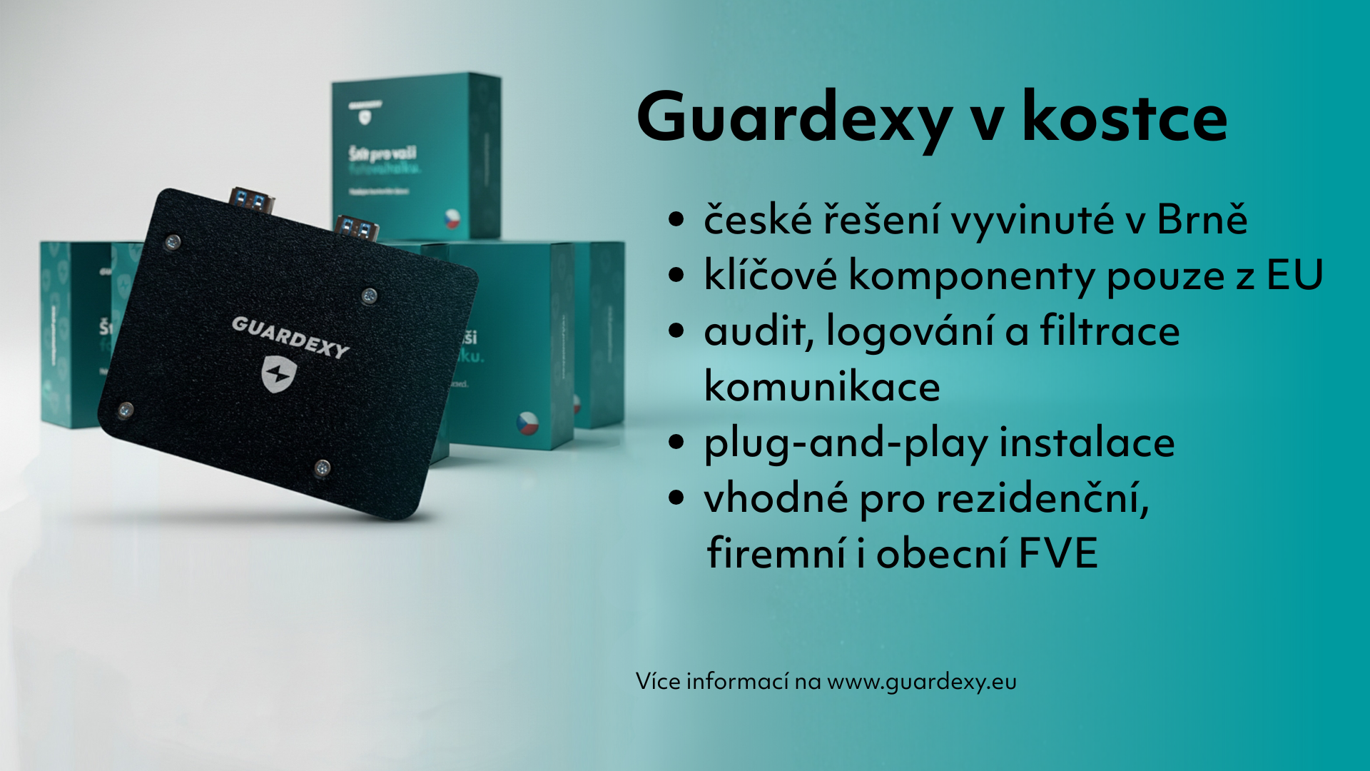 Fotovoltaika se stala součástí digitální infrastruktury firem, výrobních podniků i obcí. A každá infrastruktura musí být chráněna. Guardexy ukazuje, že kyberbezpečnost FVE lze řešit technicky, prakticky a bez radikálních zásahů do existujících systémů.